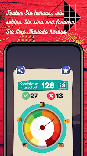 Sie erhalten ein Zertifikat mit Ihrem ungefähren IQ, das Sie versenden können, damit auch Ihre Freunde und Familie mit dieser iq-Test-App und Logikspielen ihr Gehirn trainieren können.