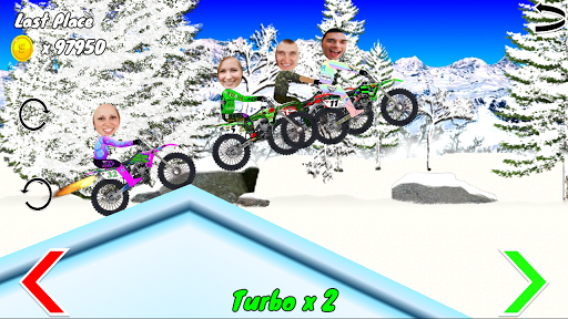 Warum Motorrad-Gesichtsrennen spielen? Weil du der Star bist! Schnapp ein selfie, um dein Gesicht dem Reiter hinzuzufügen! Mit Tonnen von Fahrrädern, Outfits und Orten können Sie immer einen frischen neuen Look haben, wenn Sie den Track aufreißen. Fügen Sie außerdem Gesichter von Freunden, Familien, Haustieren oder sogar zu Ihren Lieblings-Prominenten aus der Fotogalerie Ihres Telefons hinzu. Sie kämpfen sie dann an der Bar-to-Bar, die in Richtung der karierten Flagge barrieren. Sie müssen dieses Spiel sehen, um es zu glauben!