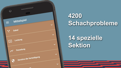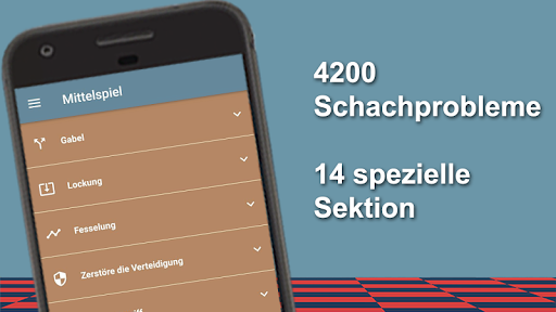 Unsere Anwendung enthält 4200 thematische Schachprobleme und einige Schacheröffnungen. Jedes Problem zeigt irgendwelche Taktik oder Trick. Sie müssen den nächsten Schachzug erraten, um die Aufgabe zu lösen und zum nächsten zu gelangen.