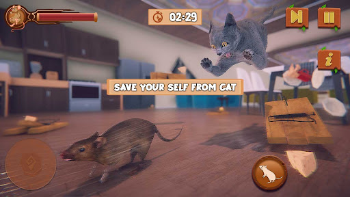 In Mouse Simulator: Cat and Mouse Family Life Games, accept furious rat family challenges and take fun to virtual wild life of mouse and cat to run and save your life from the wild kitten. Thrilling and exciting mouse survival sim tasks to do as a mice survival daily activity to do in the dream home and run away when you will collect your food from the virtual mother kitchen in this stray mouse simulator game. Virtual cat walk here and there to search the furious rat family and try to knock you out in this mouse simulator for cats. Amazing pet world to manage your cute mouse town and find food to survive in this my cat and the mouse simulator. Be the part of this cat mouse game and take fun with animal life sim thrilling adventures in this rat rodent games. Be the hamster lovers and win that cat vs rat maze running adventure in this cat and mouse quest with multiple mouse hunt traps. Stunning locations to explore as a mouse simulator and doing your duties to explore the animal life that are find their food and survive to win that cat mouse game. In the past, you will play multiple pet animal games, cat games but this rat games is best among all other cat and mouse hunt games. We will give you multiple thrilling and exciting missions to do in this Mouse Simulator: Cat and Mouse Family Life Games. Be the furious rat family survival and play with cats that are trying to catch you on any cost in this stray mouse simulator game.