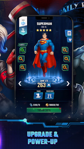 Verstärke dein Team und schließe dich mit anderen aus dem DC-Universum zusammen. Arbeitet zusammen, um die Ungerechtigkeit zu bekämpfen und eure Gegner und Bosse in zeitlich limitierten Events für fantastische Belohnungen zu erledigen. Alle DC-Comics-Superhelden, wie etwa Batman, Superman, Blue Beetle, Wonder Woman, Der Joker, Aquaman und Der Flash, können aufgewertet werden, um sie noch mächtiger zu machen.