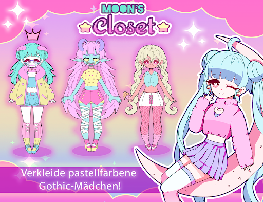 Mit Moon Schrank erstellen Sie Ihren eigenen Anime Girls Avatar? Schmücke sie mit exklusiven Modeartikeln, schminke sie und erstelle dein eigenes Kawaii-Hintergrundbild für dein Handy.
