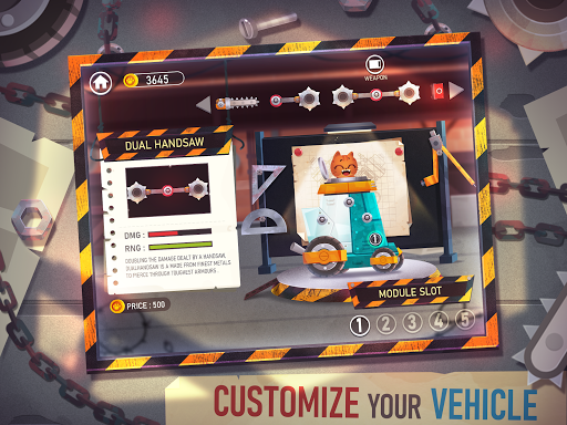 Enter the wild vicious lands as an impulsive and ferocious cat - fight your way against enemies impatiently waiting to attack you. Create your own battle machines with interesting customizations and upgrades to stand strong against the increasing difficulty levels and advanced enemies.