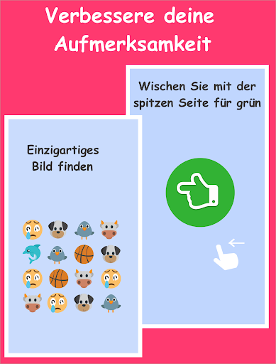 Aufmerksamkeitsspiele: Streichen Sie anhand der vorgegebenen Anweisungen von links nach rechts und achten Sie auf die Farben, Bilder und Zahlen. Mit jedem Spiel konzentrieren Sie sich mehr darauf, Ihre Aufmerksamkeit und Konzentration zu steigern.