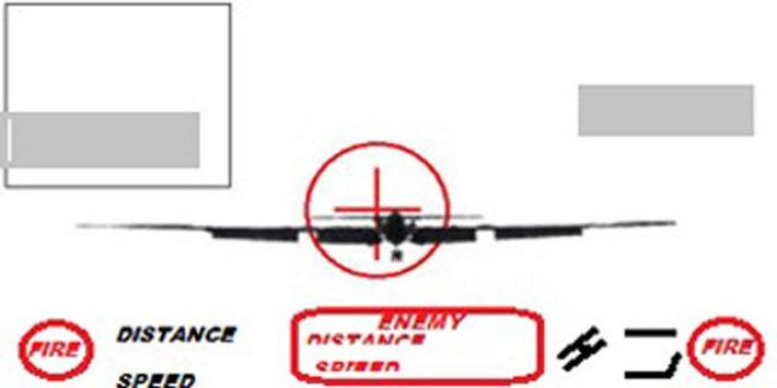 Plane must fulfill his mission : to bring down enemy bombers heading to destroy the protected object you . Control of two handles : gas (right) and flap (left). Flaps (Flaps) regulate aircraft roll " up and down " . Roll " left-right " emitting tail flap slopes smartphone emit those involving accelerator - sensor smartphone. Banks and slopes of aircraft observed in the form of icons on the bottom panel of the aircraft. This panel also displays the distance in meters to the airport (Destination) and to the enemy (Enemy), the aircraft's speed and the speed of enemy aircraft (Speed) and height (Height) of your aircraft and enemy aircraft . Compass is at the top . As there is a translucent card in the upper left corner , where a blue- red arrow shows the position of your plane and a red X position of enemy aircraft .