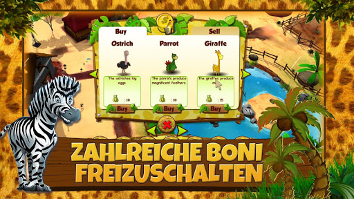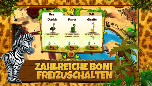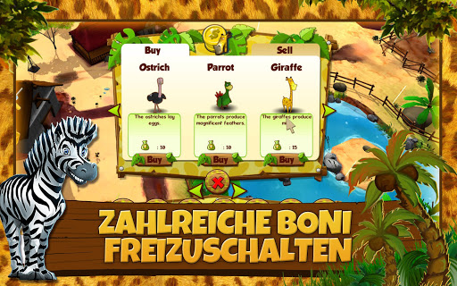 Nutze dein Land und entwickle die schönste Farm mit Tieren der Savanne.