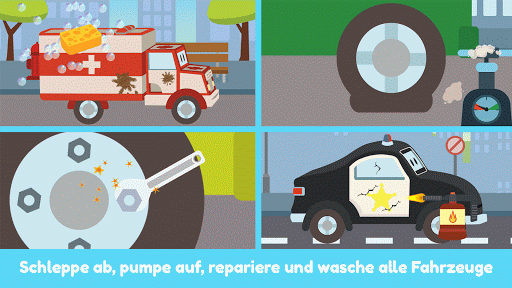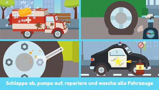 Spiele und hab Spaß mit deinen Lieblingsfahrzeugen: Amber der Krankenwagen, Mat das Polizeiauto, Franck das Feuerwehrauto, Ethan der Kipplaster, Gary das Müllauto, Suzy das kleine rosa Auto, Ben der Trecker und viele andere !