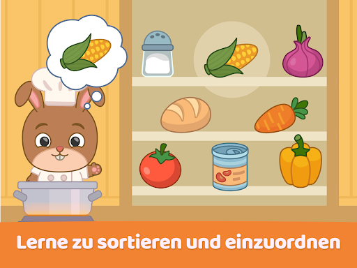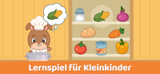logische Denkspiele: Finden Sie heraus, was Food Bunny zum Kochen braucht. Steigern Sie Ihr logisches Denken und wählen Sie einen Artikel aus, den der Hase wollte.