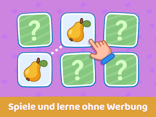 Speicherspiele: Finden Sie zwei passende Karten. Dieses Spiel ist eine einfache Version des Speicherspiels und ist zwei Jahre lang für Foddler geeignet.