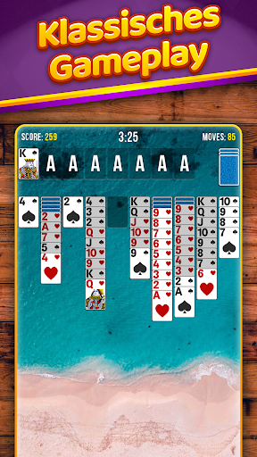 Eine geordneter Reihe verläuft vom König bis zum Ass. Sobald du eine geordnete Reihe komplettiert hast, werden die Karten automatisch vom Spielbrett entfernt und in eine freie Ablage verschoben, sodass du dich besser auf die verbliebenen ungeordneten Karten konzentrieren kannst.