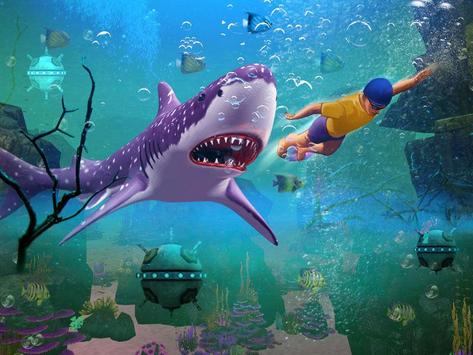 Control an angry, hungry shark through the ocean and search for food.This hungry shark simulator contains highly animated water combined with a extraordinary, huge underwater terrain with mysterious deep-sea area which gives your wanderings with the hungry shark an amazing and realistic feeling.