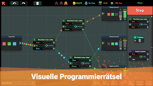 Das Spiel basiert ansatzweise auf den Technologien für maschinelles Lernen im echten Leben: von albernen Expertensystemen bis hin zu mächtigen rückgekoppelten neuralen Netzen, die die Zukunft vorhersagen können. Aber keine Sorge, es ist wie ein richtiges Knobelspiel. Du brauchst keine Erfahrung mit dem Programmieren!