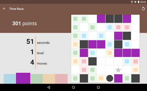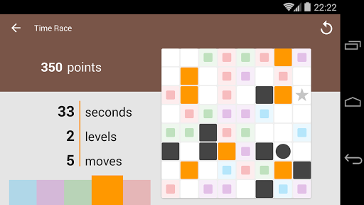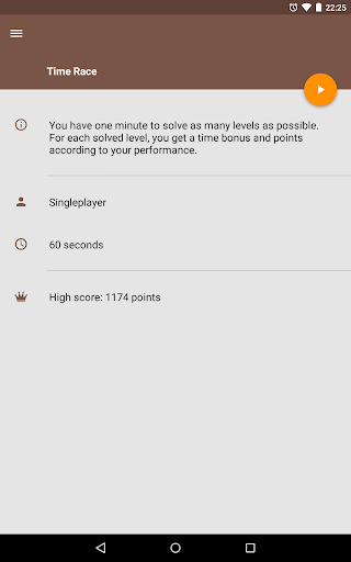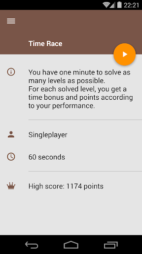 : Löse so viele Puzzles wie möglich - bis die Zeit abgelaufen ist. Du startest mit 60 Sekunden und für jedes gelöste Level bekommst du einen Zeitbonus und Punkte. Die zufällig generierten Level machen das Spiel jedes mal aufs Neue interessant.