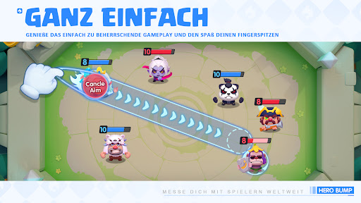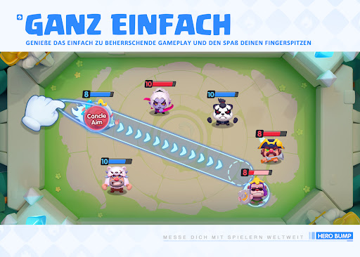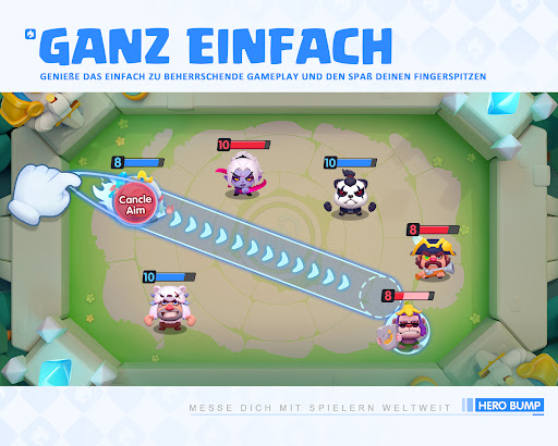Ziele und schieße deinen Helden mit dem Kraftregler, um deine Feinde zu besiegen.
