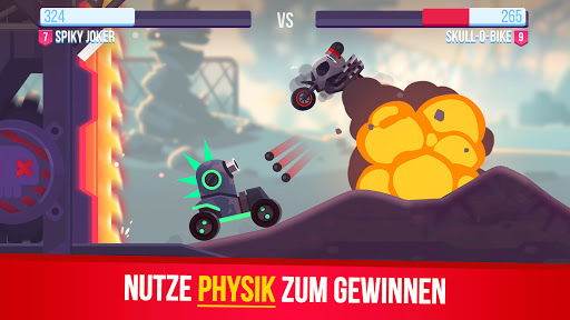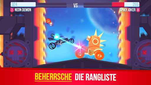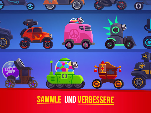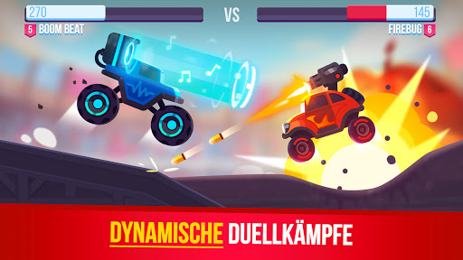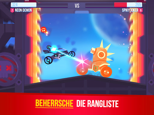 Ein Dutzend mächtiger Maschinen steht zur Auswahl. Laser, Bomben, Miniguns und Schilde – verbessere dein Fahrzeug mit tödlichen Waffen und zerstöre deinen Gegner, um zu gewinnen!