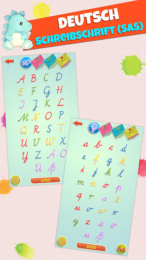 • 16 lustige Belohnungssticker, die bei Erreichen eines Meilensteins vergeben werden. Außerdem Zeichenspiele, nach jedem vollendeten Fortschritt des Alphabet-/Zeichenlevels.