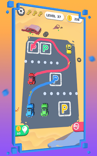 - Zeichnen Sie eine Linie mit dem Finger, um die Autos auf dem Parkplatz zu führenAutos kollid miteinander zusammen