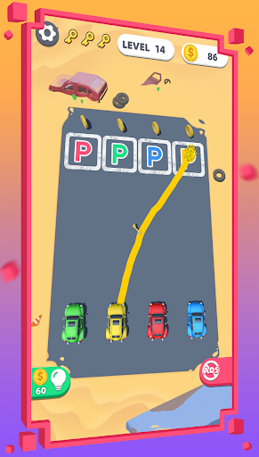 Wenn Sie Linien ziehen möchten, um die Bewegung von Objekten ohne Kollision zu steuern, wird dieses Parkspiel Ihr Favorit sein!Leiten Sie Ihre Autos in die entsprechenden Parkplätze, folgen Sie der gewünschten Route und erhalten Sie Münzen auf dem Weg!Akzeptieren Sie die Herausforderung, ein Parkmeister zu werden!