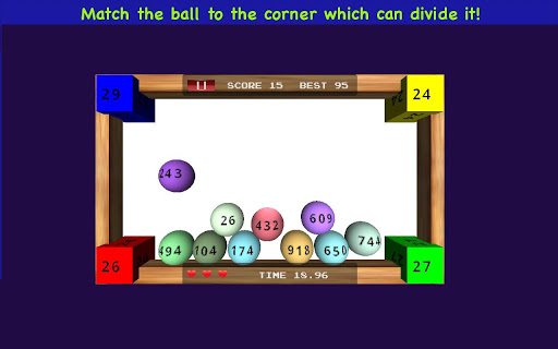 Challenge your skills with this fun, addictive maths based game. Match the bouncing balls against the corner which can divide the number on the ball!