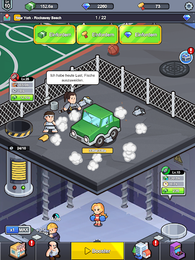 Beginne als pleite gegangener Chef, reise herum und erweitere dein Geschäft.