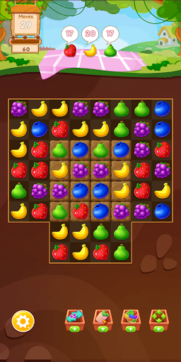 Planen Sie Ihre Bewegungen, indem Sie mit 3 oder mehr Früchten in Folge zusammenpassen, indem Sie mit Booster weisen, um diese extra klebrigen Puzzle zu überwinden!