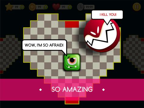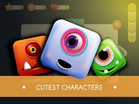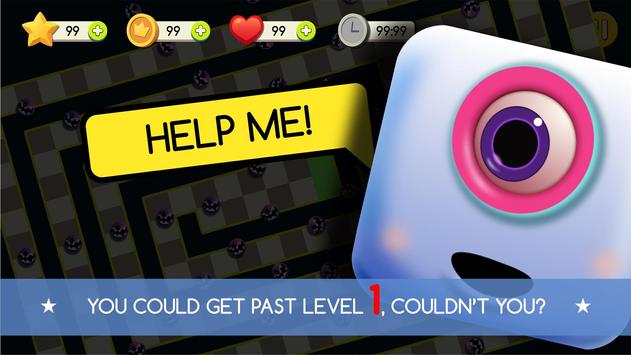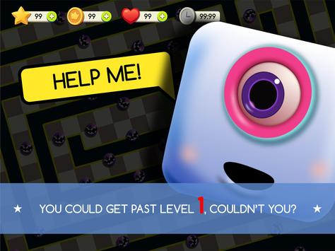 Berühre deinen Finger auf dem Bildschirm und ziehe dich so um, dass das quadratische Monster die kreisförmigen Monster nicht berührt. Denken Sie daran, das ganze Geld auf dem Weg zu essen und zu beenden.