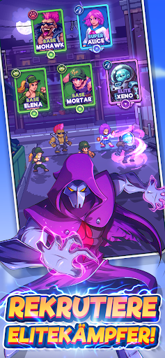 Stelle ein Team aus ultimativen 16-Bit-Pixelkämpfern zusammen und sieh ihnen dabei zu, wie sie gegen Feinde, Bosse und andere Spieler auf der ganzen Welt antreten. Bewaffne deine Bürger, indem du deine Waffenläden ausbaust, die auch dann geöffnet haben, wenn du offline bist!