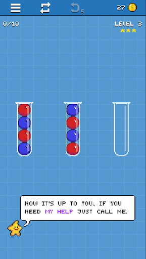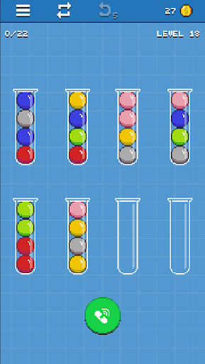 • Berühren Sie die Röhrchen, um die Kugeln auszuwählen und zu bewegen. • Sie können nur einen Ball auf einen anderen bewegen, wenn beide haben Die gleiche Farbe und die Röhre, für die Sie sich bewegen möchten, haben Sie genügend Platz.