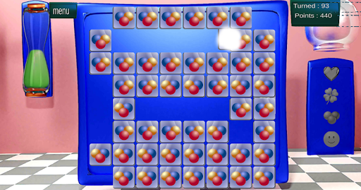 Dies ist ein Pair-Matching-Fliesenspeicher-Spiel, das dem Pinsel-Platz unter Windows ähnlich ist, zwei Paar Fliesenpaare anpassen, bevor die Zeit abläuft, Joker, Power UPS und TIME-Boosts genießen