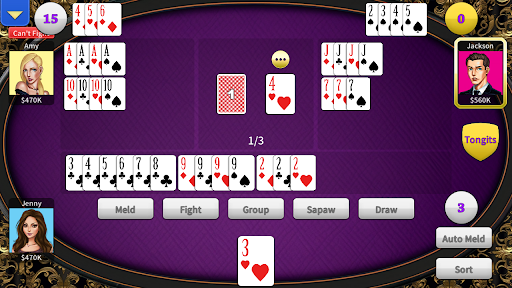 Tonder/Tongits Go Offline ist ein kostenloses Offline -Spiel mit großartigen Grafiken und Tonnen von Bestenlisten.Es ist ein beliebtes 3-Spieler-Rommé-Spiel auf den Philippinen, bei dem Sets und Läufe erstellt und die nicht übereinstimmenden Karten in Ihrer Hand minimiert werden.Es ist ein Strategiespiel, bei dem Sie vermeiden müssen, zu verbrennen oder zu viele Punkte zu haben, wenn der zentrale Stapel leer ist.Ziel ist es, die geringsten Gesamtpunkte zu haben oder die ersten zu sein, die alle Ihre Karten loswerden.