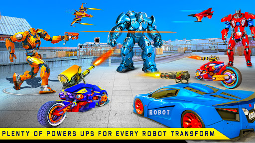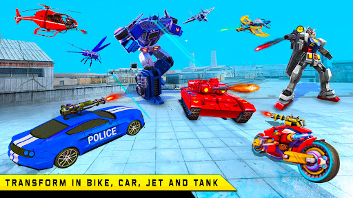 Laden Sie dieses erstaunliche Spiel herunter, das als Autotransformation mit mehreren Robotern verfügbar ist. Roboterspiele mit einer großen Auswahl an Transformationsspielen, Polizeiroboter-Fahrspielen, Flugspielen von Roboterautospielen und Flugroboterspielen. Bereiten Sie sich auf unbegrenzte Schlachten von Roboter-Transformationsspielen und Kampfroboter-Simulatorspielen vor.