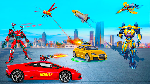 Für den finalen Roboterkampf gegen deine mächtigen Gegner kannst du dich in Raumschiffe verwandeln. Darüber hinaus bietet Robot Car War oder Robot Game eine Auto-Roboter-Transformation für ein Fahrerlebnis im Auto.