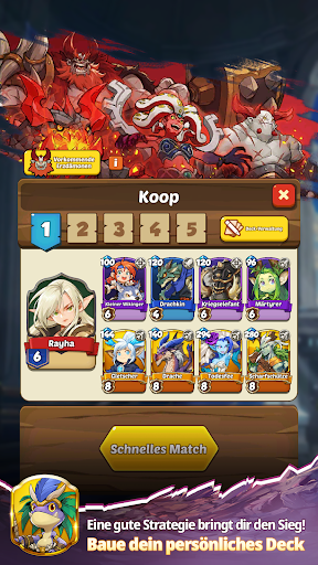 Stelle dich deinen Gegnern, indem du dein Lager erweiterst und Einheitenkarten kombinierst, um Taktiken zu entwickeln, die dich zum Sieg führen.