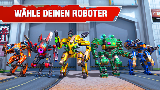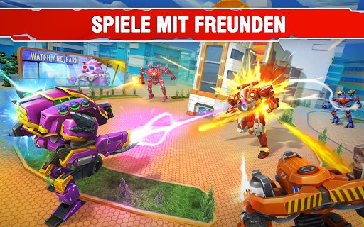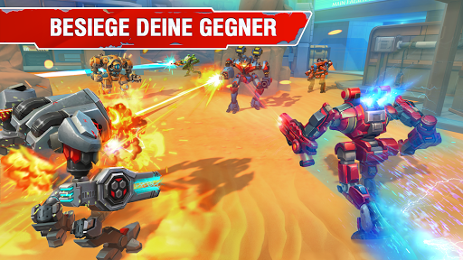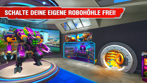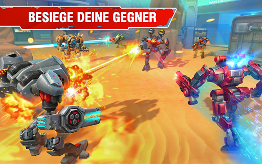 - 23 einzigartige und riesige Kriegsroboter, die du freischalten, verbessern und ins Gefecht führen kannst.