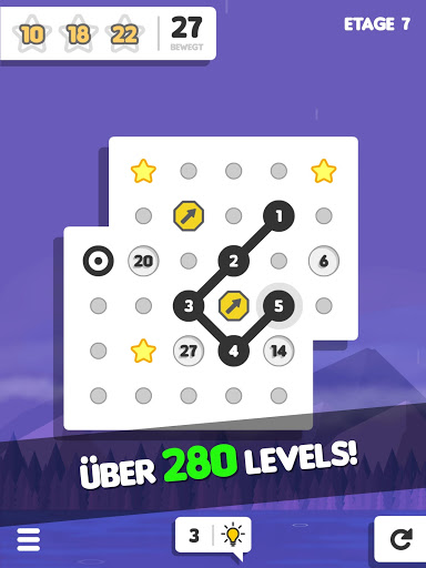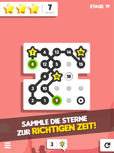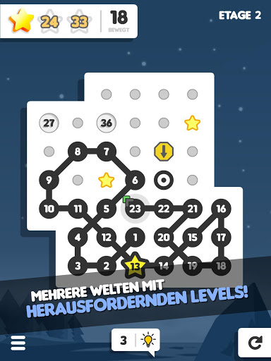 Finden Sie die beste Route und verbinden Sie die Punkte in der Reihenfolge bis zum Ende der Linie. Vergessen Sie jedoch nicht, die Sterne zur richtigen Zeit einzusammeln!