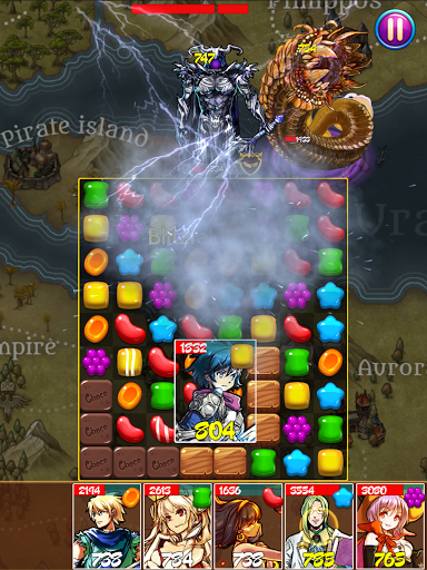 Verwenden Sie Blockmatches, um mit 6 Protagonisten gegen legendäre Monster zu kämpfen.