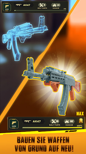 Der Idle-Clicker-Mechanismus macht es Ihnen leicht, Ihre Waffen zu bauen und zu verbessern, auch wenn Sie das Spiel nicht aktiv spielen. Je weiter Sie vorankommen, desto mehr Munitionsressourcen erhalten Sie und desto mehr neue Komponenten und Upgrades schalten Sie frei, um Ihre Mafia-Gangwaffen und Scharfschützengewehre auf die nächste Baustufe zu bringen. Der Shooter-Modus ist schnell und actionreich, mit beeindruckenden Grafik- und Soundeffekten, die Sie mitten in die Zombie-Apokalypse versetzen! Schnappen Sie sich Ihre Schrotflinte, Ihre Glock-Pistole, Ihre Magnum oder Ihr AK47-Gewehr und ziehen Sie als echter Gun Builder Survivor in die Schlacht, um Ihre gesamte Waffensammlung auf die Probe zu stellen!