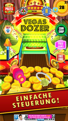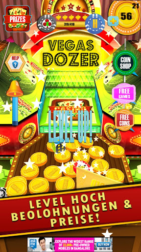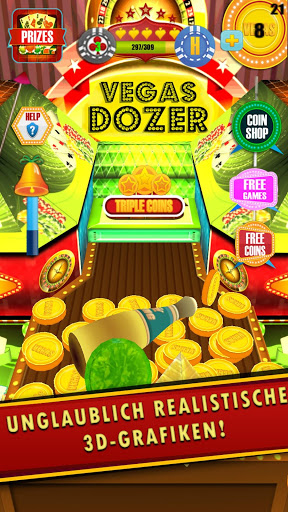 Dieses Dozer Spiel auf Deutsch hat ein Vegas Motiv und man macht sozusagen eine virtuelle Vegas-Tour. Es gibt keine Slot Maschine in diesem Spiel, aber zahlreiche unglaubliche Preise werden fallen, wenn du dieses Coin Pusher Spiel spielst.
