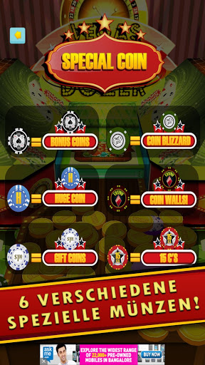 Es gibt andere coole Funktionen wie riesige Coins und Seitenwände, die dir helfen, die Goldmünzen schneller von dem Dozer Tisch zu schieben. Also benutze den Münzschieber Dozer / Bulldozer, um vom Tisch zu drücken!