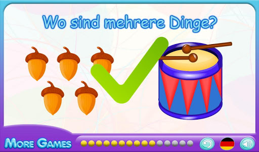 In diesem Spiel vor dem Kind erscheinen die farbenreichen Darstellungen der Gegenstände. Er muss das Bild bezeichnen, wo sich ein Gegenstand oder wo viel Gegenstände, je nach der Frage befindet. Das Ziel des Spieles: bei den Kindern die Vorstellung über die Zahl der Gegenstände "einen zu bilden - man ist viel" und, in der Rede des Wortes "einen zu aktivieren, es ist" viel.