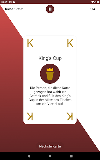 Eine Regel bleibt allerdings immer gleich: Wenn einer der Könige gezogen wird, wird in den King's Cup in der Mitte des Spieltisches ein Getränk um ein Viertel aufgefüllt. Wird der letzte König gezogen, so muss dieser Spieler den gesamten Becher austrinken.