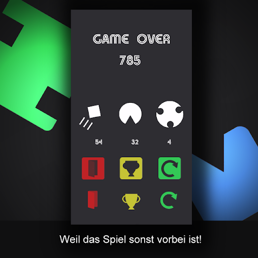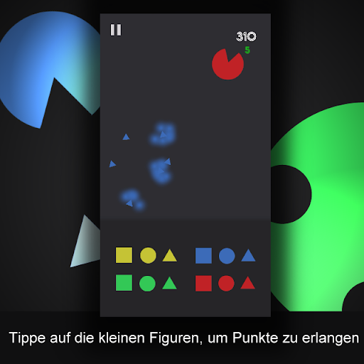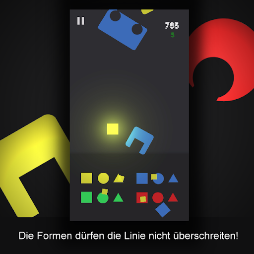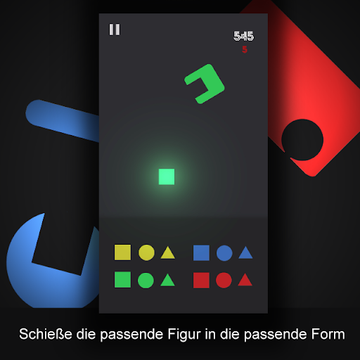 Das Spiel startest du ganz einfach, indem du den grünen Pfeil nach links, in die passende grüne Form schiebst.