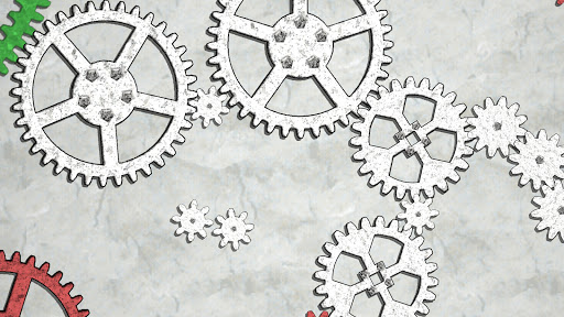 - Rote Zahnräder. Das Ziel des Spiels ist es, sie alle gleichzeitig in Bewegung zu setzen.