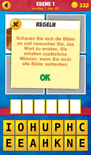• Die Bilder werden einen nach dem anderen gezeigt. Erraten Sie das Wort mit wenigen Bildern und verdienen Sie mehr Münzen!