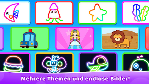 - Lerne beim Malen Buchstaben, Zahlen, Tiere, Lebensmittel und mehr;