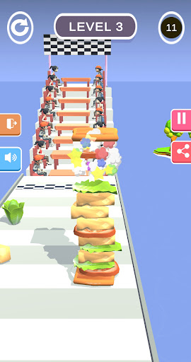 This run Sandwich run game picks up your favorite ingredients to make a sandwich as high as you can. Do you love sandwiches? So definitely you will eat sandwiches for yourself. Pick up the ingredients according to your sandwiches like a club sandwich, BBQ sandwich, Cuban sandwich, grilled cheese sandwich, and many more runner words.