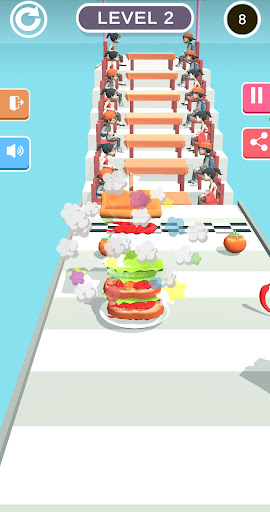 - Running 3d and dodging obstacles. Jump, collect sandwiches, and eat.