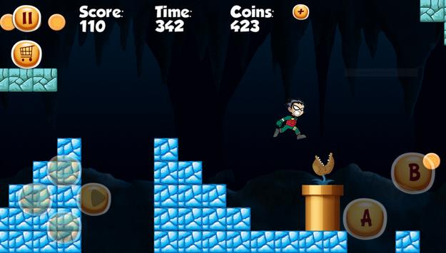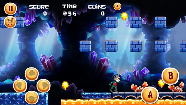 robin Super Hero boy has to pass lots of evil crocs, spiders and dragons and also go through noir castles. You are Titans - the cool superhero boy!