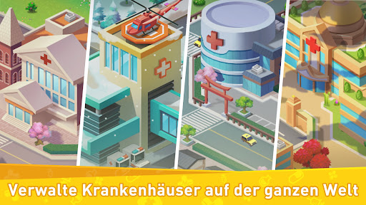 - Schalte deine Krankenhäuser/Kliniken an exotischen Orten frei und erweitere sie;