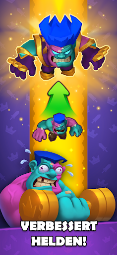 - Fusioniert und entwickelt Helden weiter, um neue Vorteile, Fähigkeiten und Angriffe freizuschalten oder ihre Werte zu erhöhen, damit sie Gegner auf Anhieb besiegen!